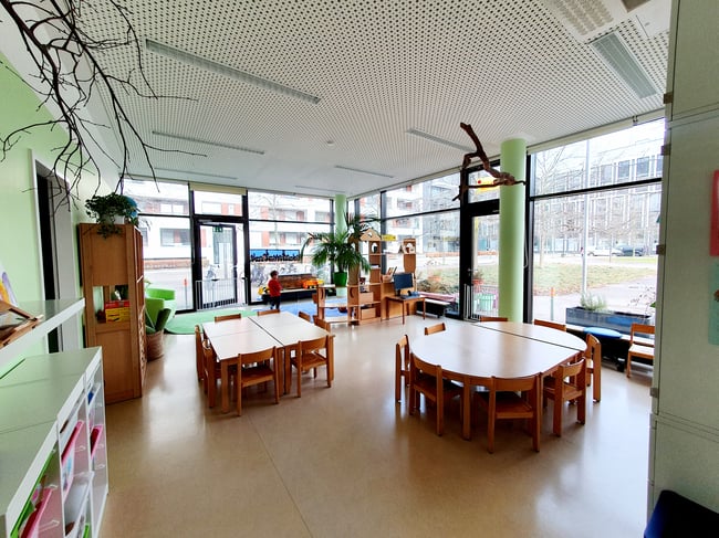 toben, lachen, singen und feiern derzeit 32 Ein- bis Sechsjährige altersgemischt gemeinsam. Offene, lichtdurchflutete Räume, eine herzliche Atmosphäre mit viel Platz für kleine Entdecker - das